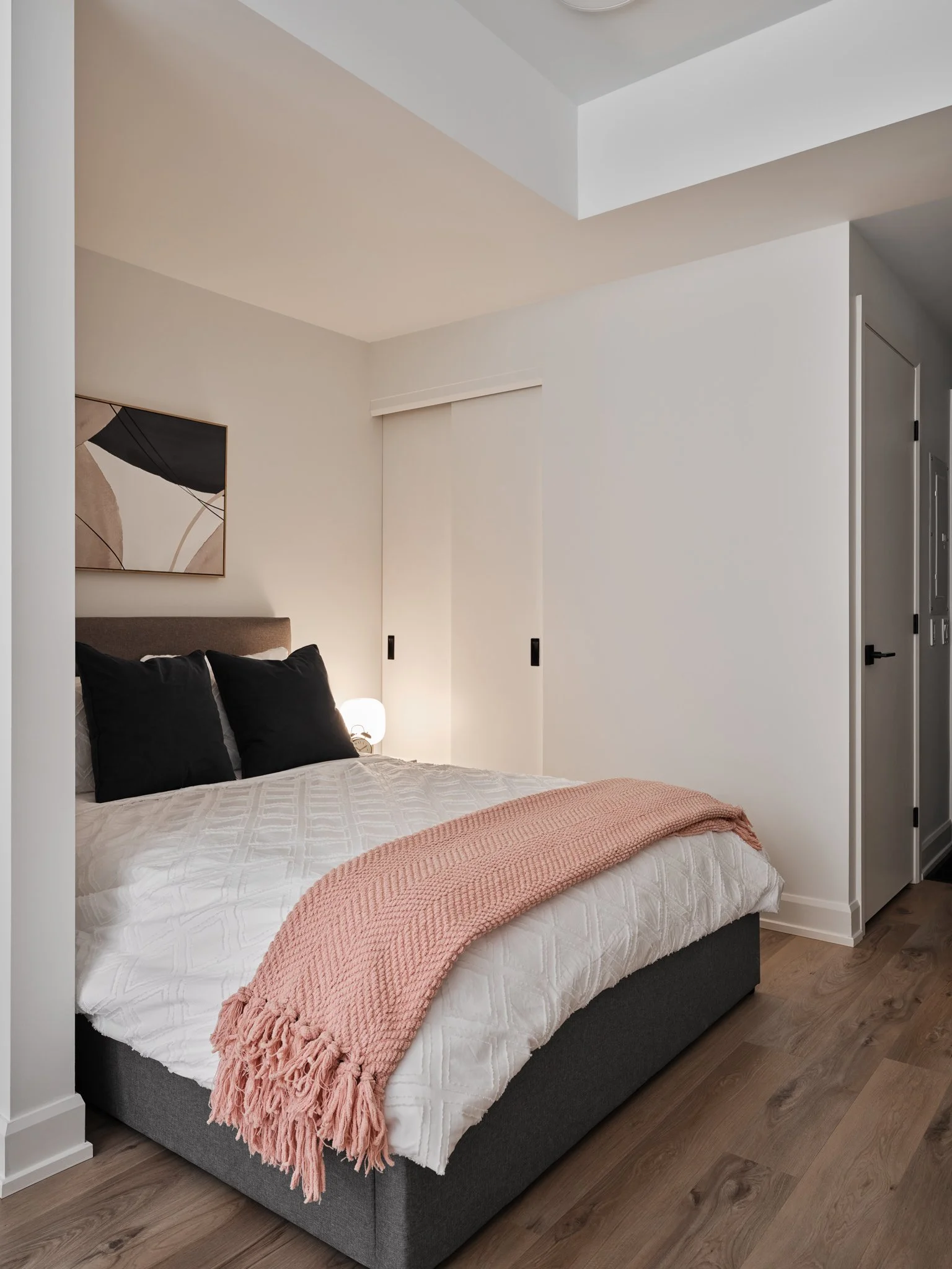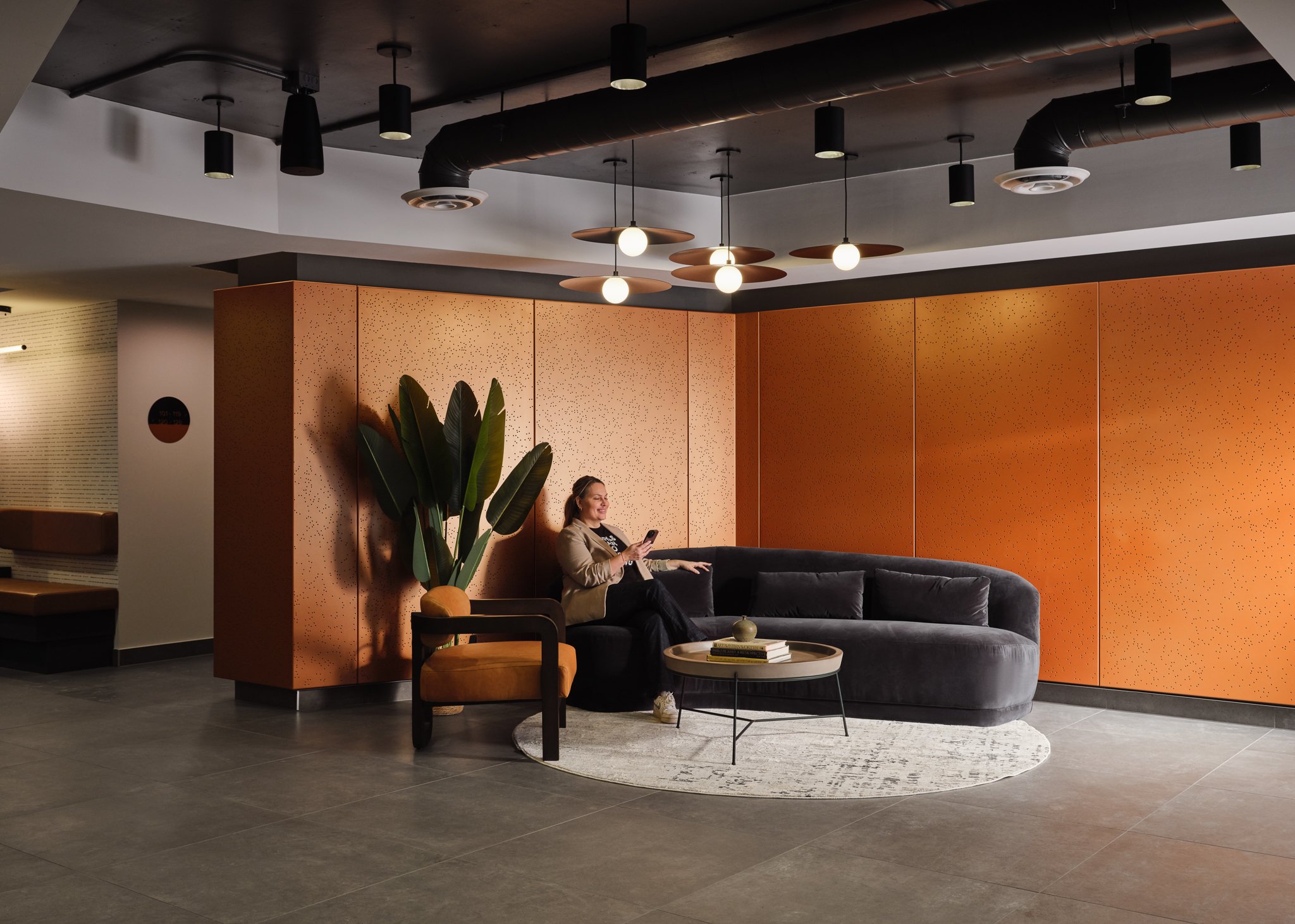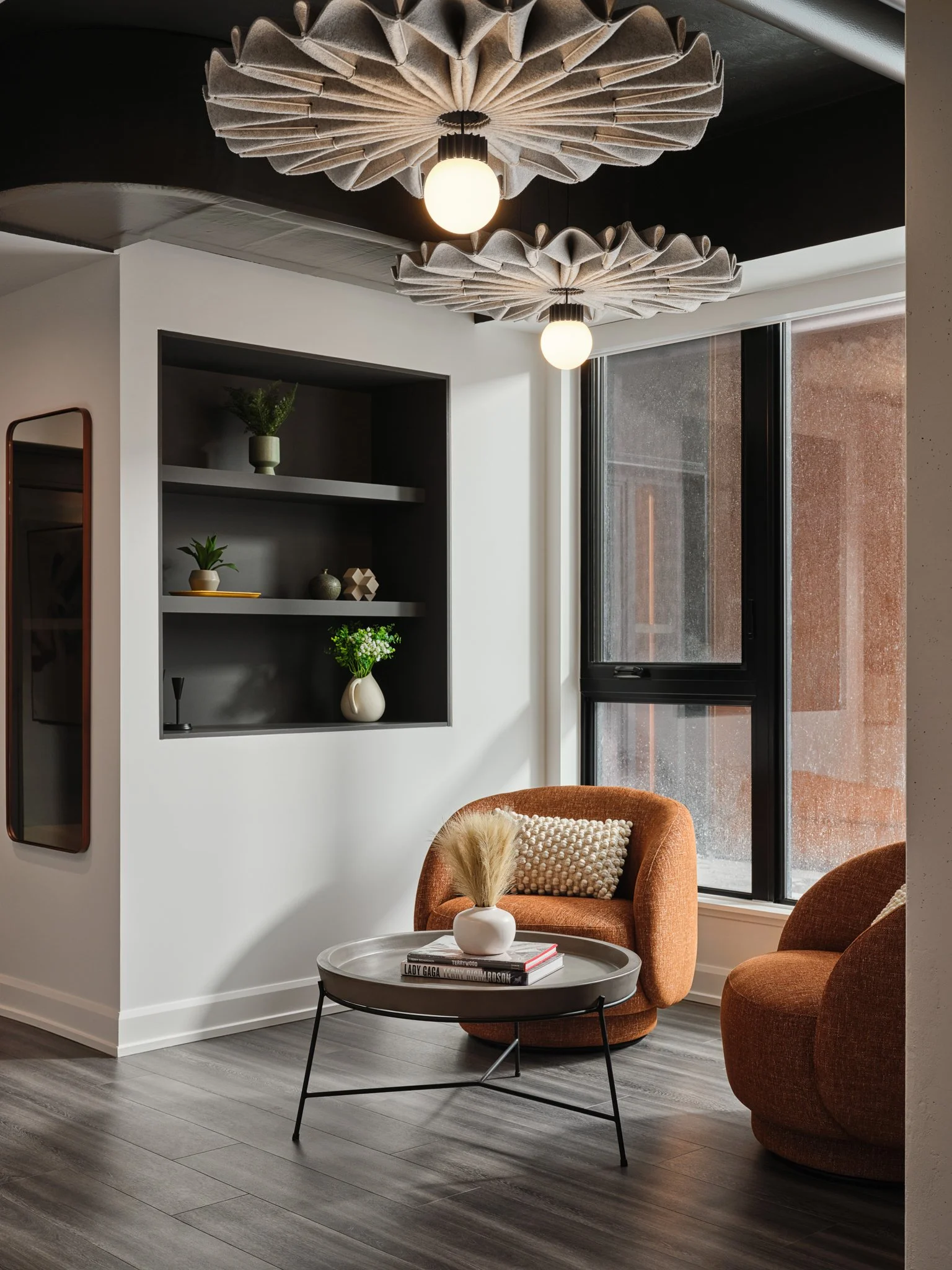 // The design of the public realm was focused on creating an engaging built form and façade treatment that animates the street frontage. Dark elements climb the façade in a playful way creating rhythm and variation along the east elevation while also allowing the building to step back from the street on the upper levels.